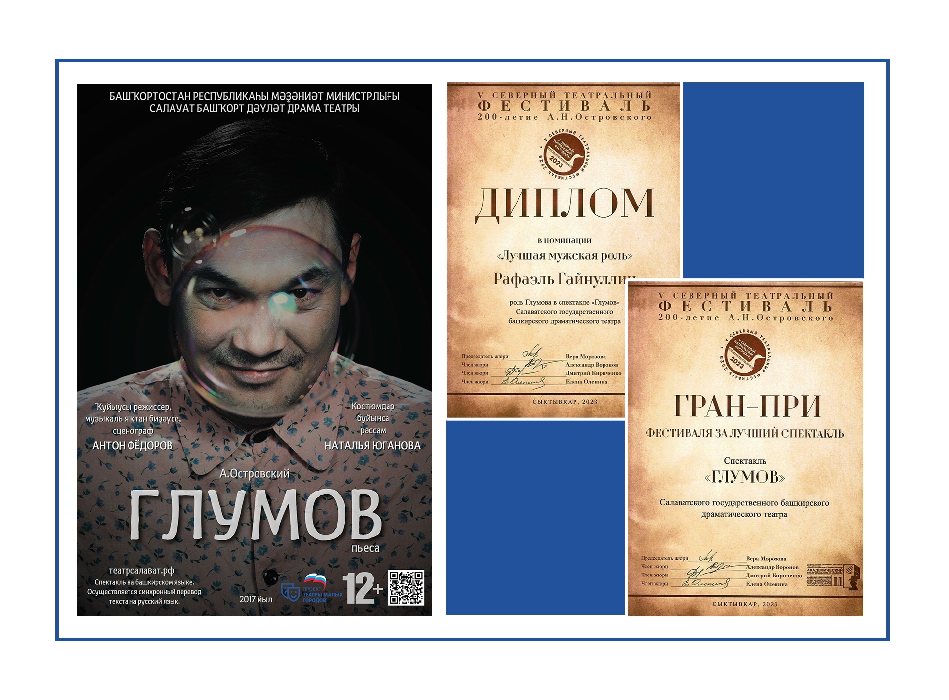 - "Гран-при за лучший спектакль" и "Лучшая мужская роль" (за роль Глумова - Р.Гайнуллин) в V Северном театральном фестивале, посвященный 200-летию со дня рождения А.Н. Островского (г.Сыктывкар, Республика Коми, 2023г.)