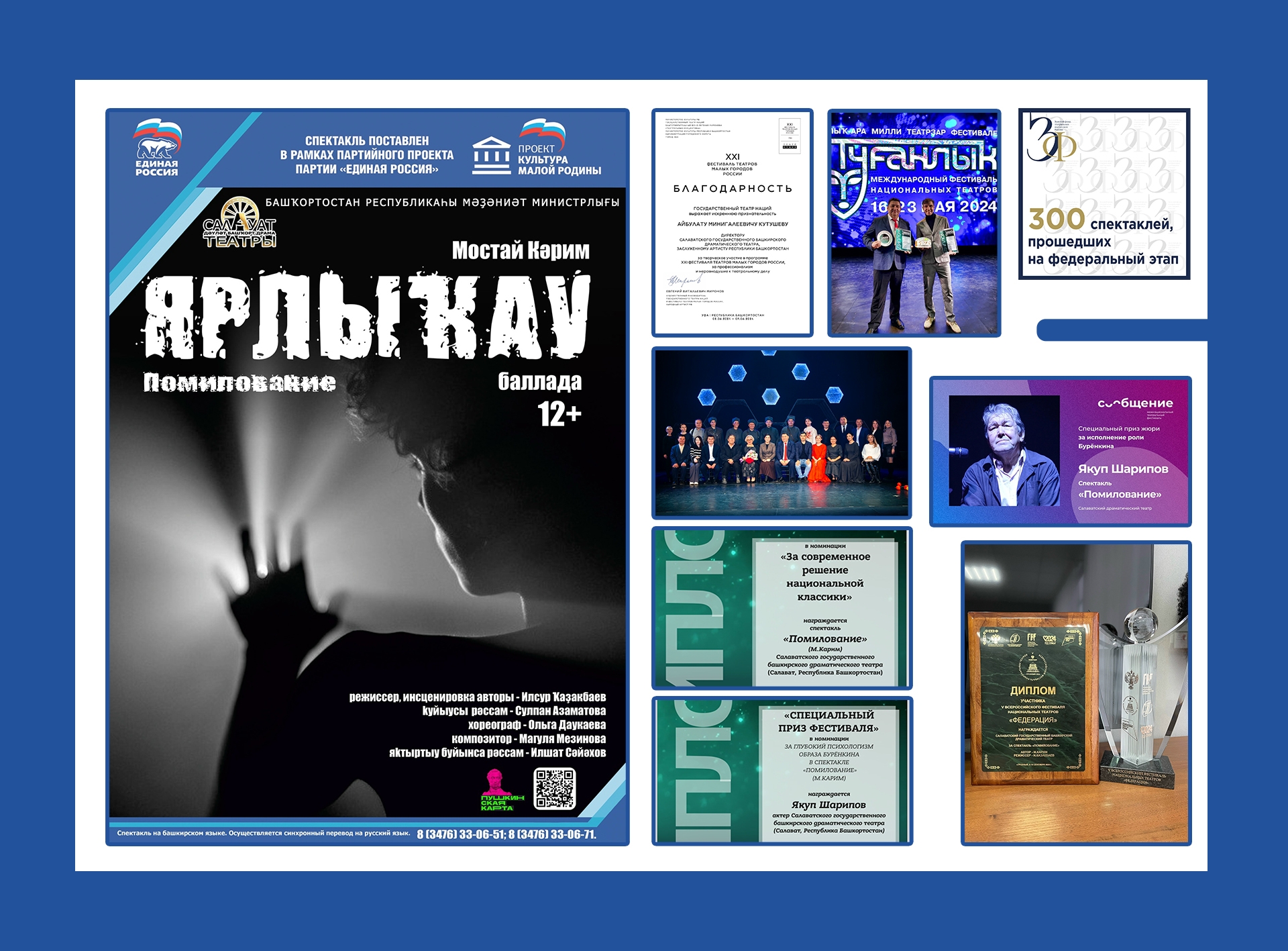 - Участник Международного фестиваля национальных театров «Туганлык». Победитель в номинациях: "Современное решение национальной классики", "За глубокий психологизм образа Бурёнкина" (г.Уфа, 2024г.)
