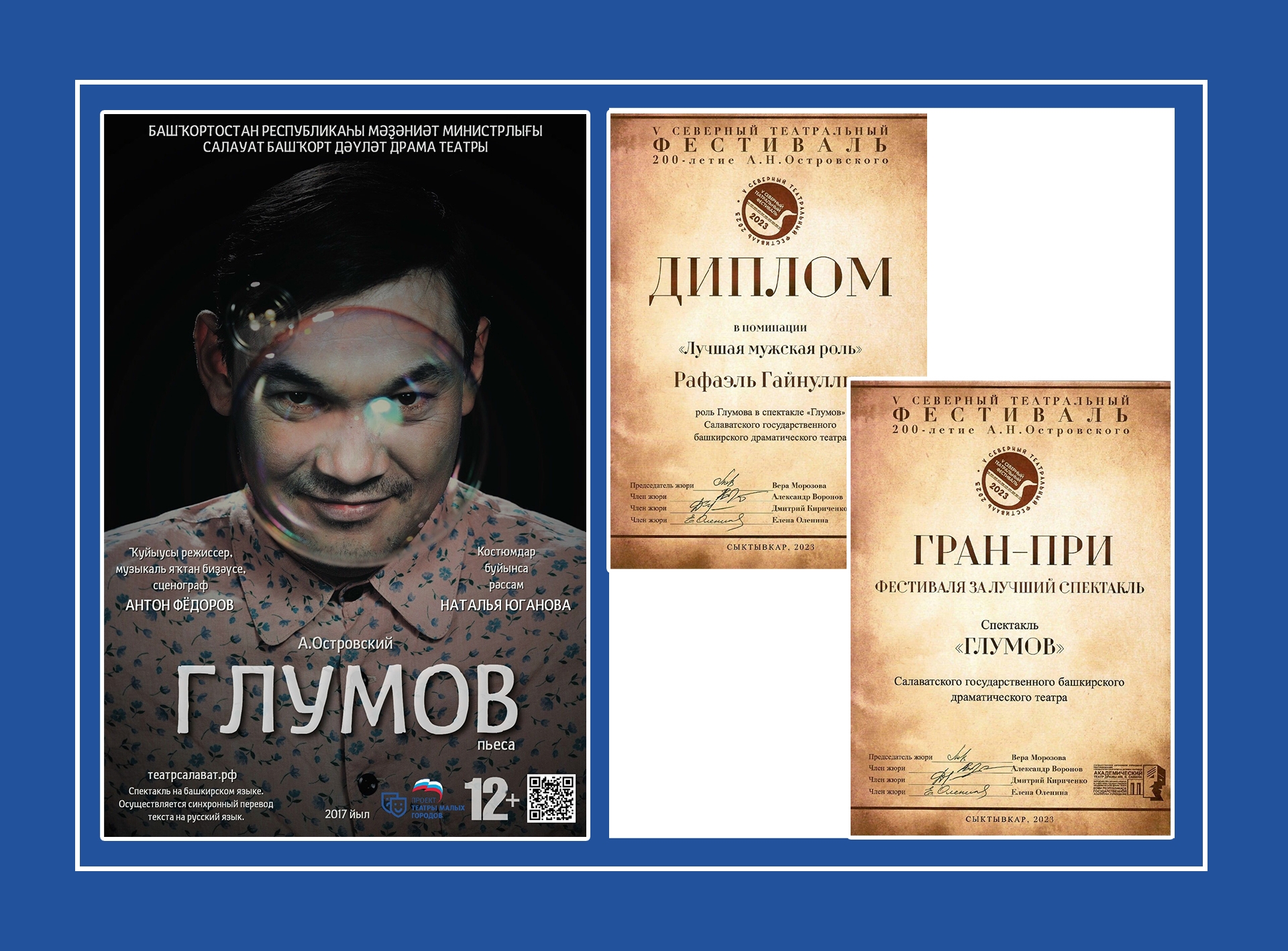 - "Гран-при за лучший спектакль" и "Лучшая мужская роль" (за роль Глумова - Р.Гайнуллин) в V Северном театральном фестивале (г.Сыктывкар, Республика Коми, 2023г.)